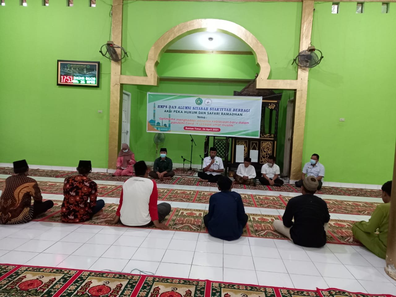 Kampus Melayu (humas) Bengkalis – Sejumlah mahasiswa yang tergabung dalam Himpunan Mahasiswa Program Studi (HMPS) Siyasah Syar’iyyah Sekolah Tinggi Agama Islam Negeri (STAIN) Bengkalis menggelar kegiatan aksi peka hukum dan safari Ramadan di Desa Bantan Timur, Kecamatan Bantan, Senin (26/04/2021). Pelaksanaan digelar di Masjid Nurul Huda dan dihadiri oleh Wakil Ketua Bidang Kemahasiswaan dan Kerjasama, Wira Sugiarto, S.IP, M.Pd.I, Ketua Jurusan Syariah dan Ekonomi Islam, Wan Muhammad Fariq, Lc, M.Pd, Ketua Program Studi Siyasah Syar’iyyah, Khairil Anwar, M.IRKH, sejumlah mahasiswa dan para alumni Program Studi Siyasah Syar’iyyah STAIN Bengkalis. Kehadiran rombongan STAIN Bengkalis disambut hangat oleh masyarakat dan jamaah masjid Nurul Huda Desa Bantan Sari. Hadir juga Sekretaris Desa Bantan Sari, dan Imam Masjid Nurul Huda. Mewakili Ketua STAIN Bengkalis, Wakil Ketua Bidang Kemahasiswaan dan Kerjasama, Wira Sugiarto, S.IP, M.Pd.I mengucapkan terima kasih atas sambutan yang diberikan oleh masyarakat Desa Bantan Sari kepada segenap rombongan STAIN Bengkalis. “Semoga kehadiran kami bisa meningkatkan silaturahmi di antara kita dan sedikit banyak masyarakat bisa merasakan eksistensi kampus STAIN Bengkalis.” Ungkapnya. Sementara itu, Ketua Program Studi Siyasah Syar’iyyah, Khairil Anwar, M.IRKH menerangkan bahwa aksi peka hukum merupakan kegiatan rutin yang dilakukan oleh Program Studi Siyasah Syar’iyyah STAIN Bengkalis untuk mengenalkan lebih dekat kepada masyarakat tentang hukum. Di bulan Ramadan, kegiatan disertai dengan safari Ramadan dan beberapa acara lainnya dengan harapan memohon keberkahan kepada Allah Swt. Selain aksi peka hukum, juga diadakan acara buka puasa bersama, santunan anak yatim dan dhuafa serta safari Ramadan yang diisi tausyiah agama oleh Ketua Program Studi Siyasah Syar’iyyah, Khairil Anwar, M.IRKH.