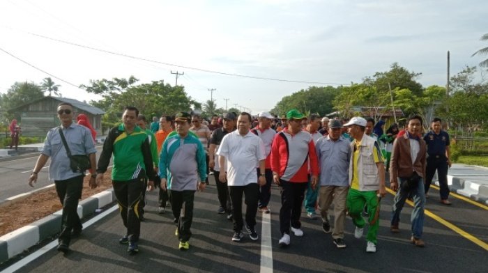 Kampus Melayu, Selat Panjang – Peringatan HAB ke – 73 Meranti, Rombongan STAIN Bengkalis ikuti Gerak Jalan Kerukunan. Agenda terakhir sempena memeriahkan peringatan Hari Amal Bakti Kemenag Ke – 73 tahun 2019 di Meranti yaitu dengan menggelar Gerak Jalan Kerukunan , Kegiatan dimulai dari Kantor Kemenag Kepulauan Meranti . Jumat, 04/01/2019 Bupati Kepulauan Meranti H. Irwan Nasir, ikut serta pada kegiatan ini, selanjutnya diikuti juga kepala Kantor Wilayah Kementerian Agama Provinsi Riau, Kementerian Agama Se – Provinsi Riau, dan tidak ketinggalan Rombongan STAIN Bengkalis juga ikut serta. Ketua STAIN Bengkalis Prof. Dr. H. Samsul Nizar, M. Ag lewat Kabag AUAK H. Nasrun Harahap, MA mengucapkan terima kasih kepada rombongan STAIN Bengkalis yang telah mau mengikuti kegiatan ini. “Momen ini merupakan momen mempereratkan tali silaturahmi antar sesama umat beragama, lewat momen ini mari kita pereratkan ukhwah kita sehingga terciptanya masyarakat yang aman, damai dan sejahtera. Selain itu, sebagai salah satu instansi dibawah naungan Kementerian Agama kita sama – sama berharap agar kementerian agama lewat lembaga pendidikan bisa menciptakan insan – insan yang berkualitas prima dan bertanggung jawab sebagai penerus bangsa ini”. Pungkasnya Selanjutnya, Nasrun berharap agar kementerian agama bisa memberikan contoh terbaik, khususnya untuk instansi – instansi yang berada dibawah Kementerian Agama.